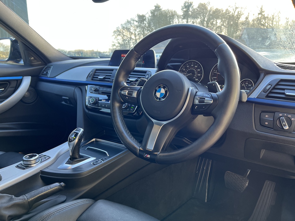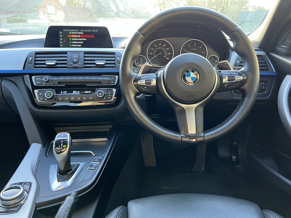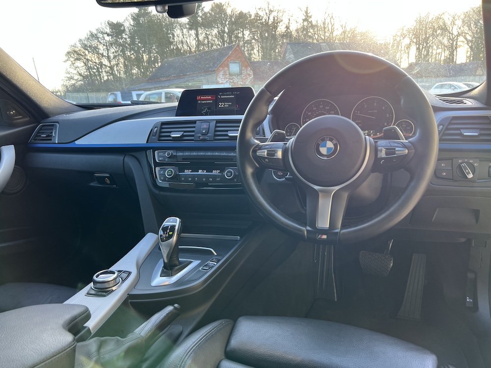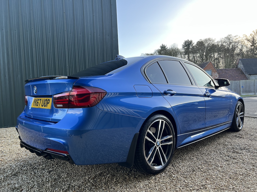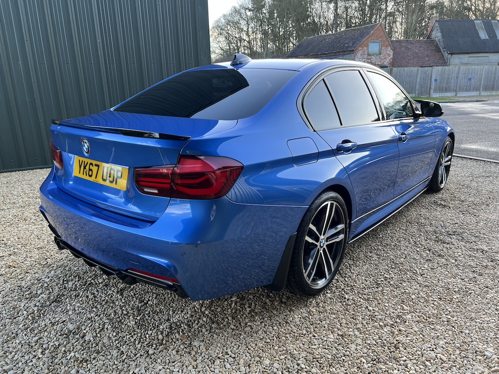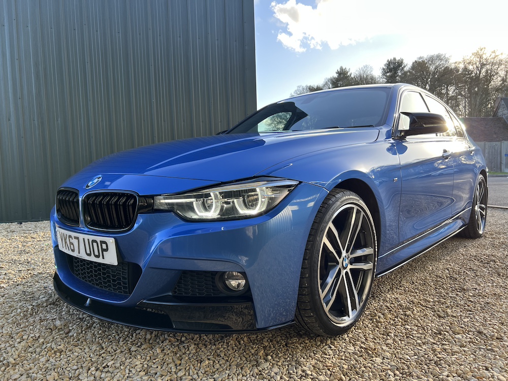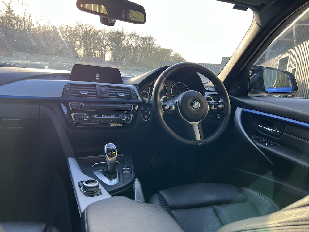 GREAT EXAMPLE OF THIS BMW 320D AUTOMATIC M SPORT SHADOW EDITION that is FINISHED IN THE STUNNING ESTORIL BLUE METALLIC PAINT and that has only done 57,322 miles with a GREAT service history to present mileage, 6 recorded services, 5 being with a BMW main dealer and one independent with the most recent being an engine oil and filter service carried out on 02/25! 12th FEB 2026 MOT No Advisories. 8 Speed Automatic Transmission, Full Black Dakota Leather upholstery, M Sport trim, SHADOW EDITION SPEC, Harmon Kardon Audio System, rear parking sensors, cruise control, bluetooth, multimedia steering wheel controls, climate control, air con, e/windows and mirrors height adjustable drivers seat, 19″alloy wheels. This 320d also benefits from a tatseful aftermarket bodykit that includes front splitter, rear diffuser, rear spoiler, black mirror caps and side skirts. 2 keys, remote c/locking alarm. HPI clear. Very clean car throughout which has been impeccably maintained. Stunning car ready to go at only £15,995.00 Price includes 3 Months Premium Autoguard Warranty 6 or 12 months also available. Tel 07466 577406